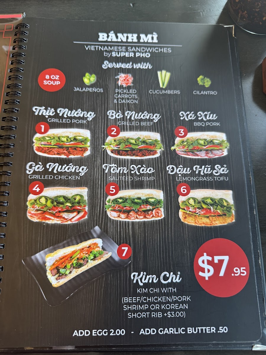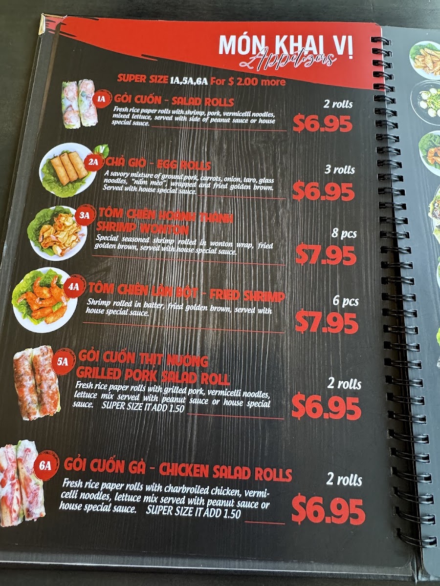 The menu at Super Pho Beef Noodle Soup Vietnamese Cuisine offers a straightforward and inviting selection of traditional Vietnamese dishes, centered around comforting soups and fresh, flavorful noodle bowls. It’s the kind of place where you can enjoy a satisfying meal any time of day, whether you’re stopping by for a quick lunch or settling in for a relaxed dinner.